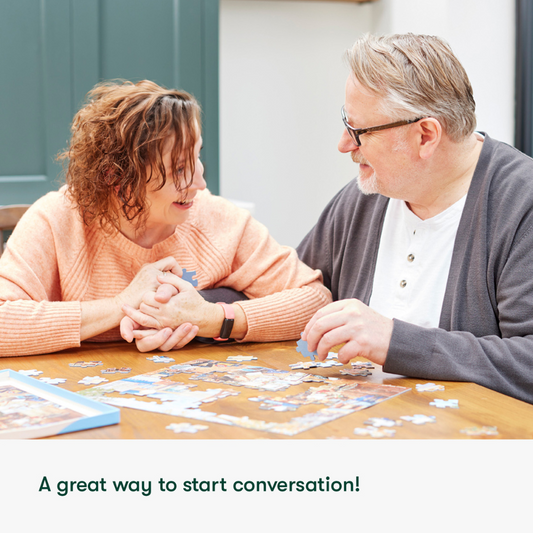 Jigsaw puzzles offer valuable cognitive stimulation for people living with dementia, promoting memory recall, problem-solving skills, and overall mental engagement. Engaging in puzzle-solving activities can foster a sense of accomplishment and confidence, enhancing mood and reducing agitation or anxiety.