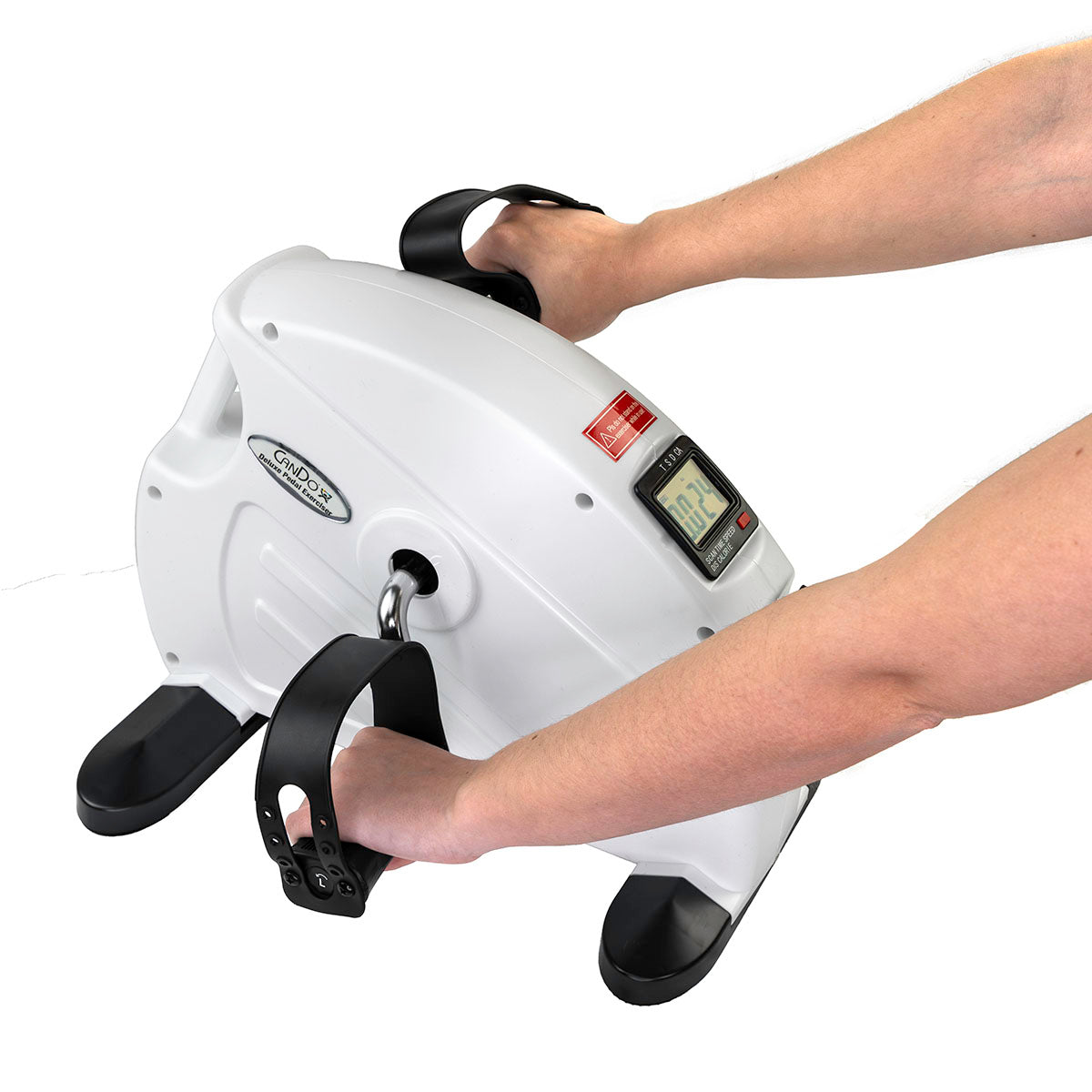 The CanDo Deluxe Pedal Exerciser is developed for both table-top and floor use, which the exerciser operates forward and backward motions for a complete arm and leg workout. Sturdy pedals double as ergonomic hand grips while adjustable straps provide extra comfort and security. So quiet, you could pedal under the desk and nobody would know.