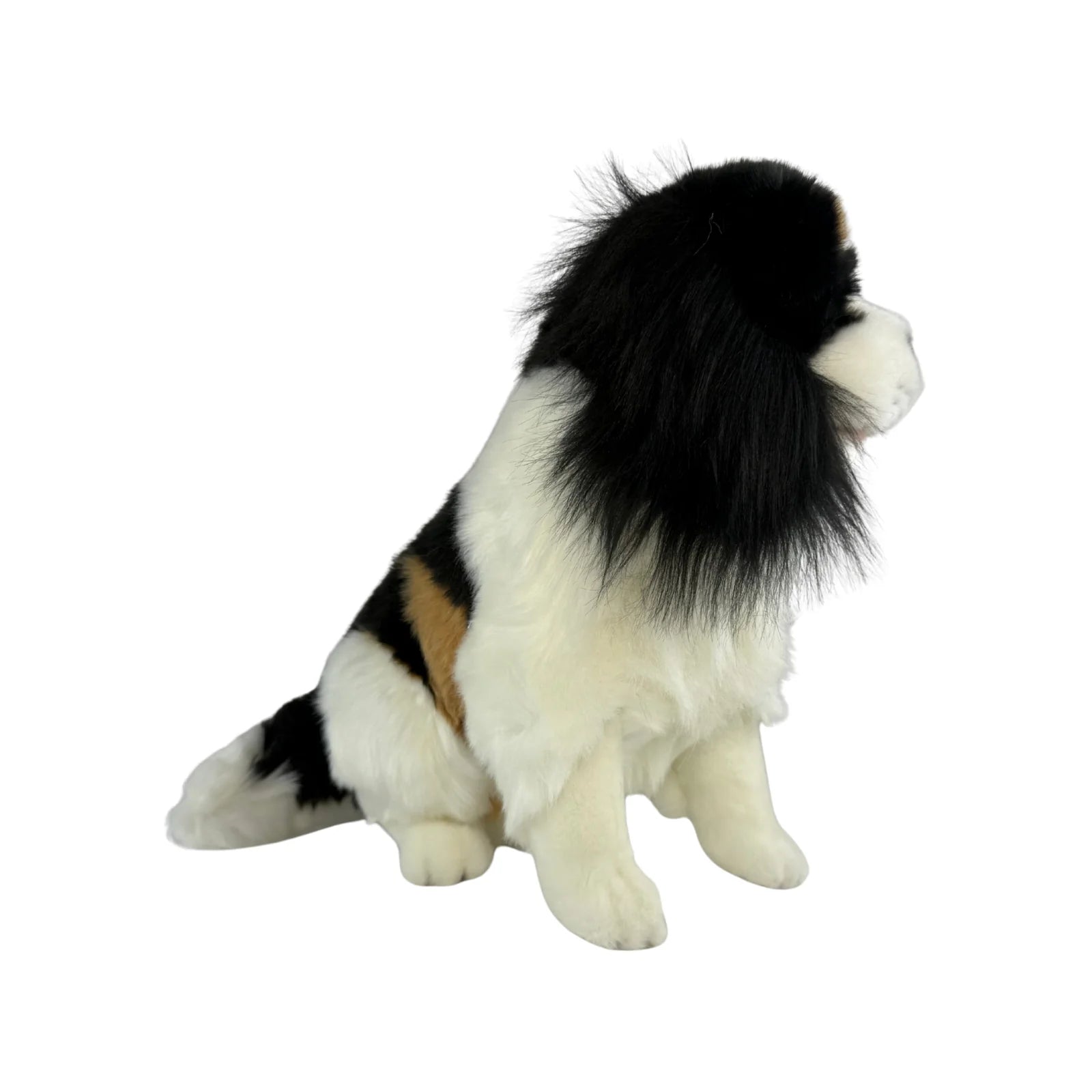 Chester is a realistic handmade plush dog toy in a sitting position. Silky beautiful soft and loveable cuddly stuffed Cavalier King Charles Spaniel toy.
