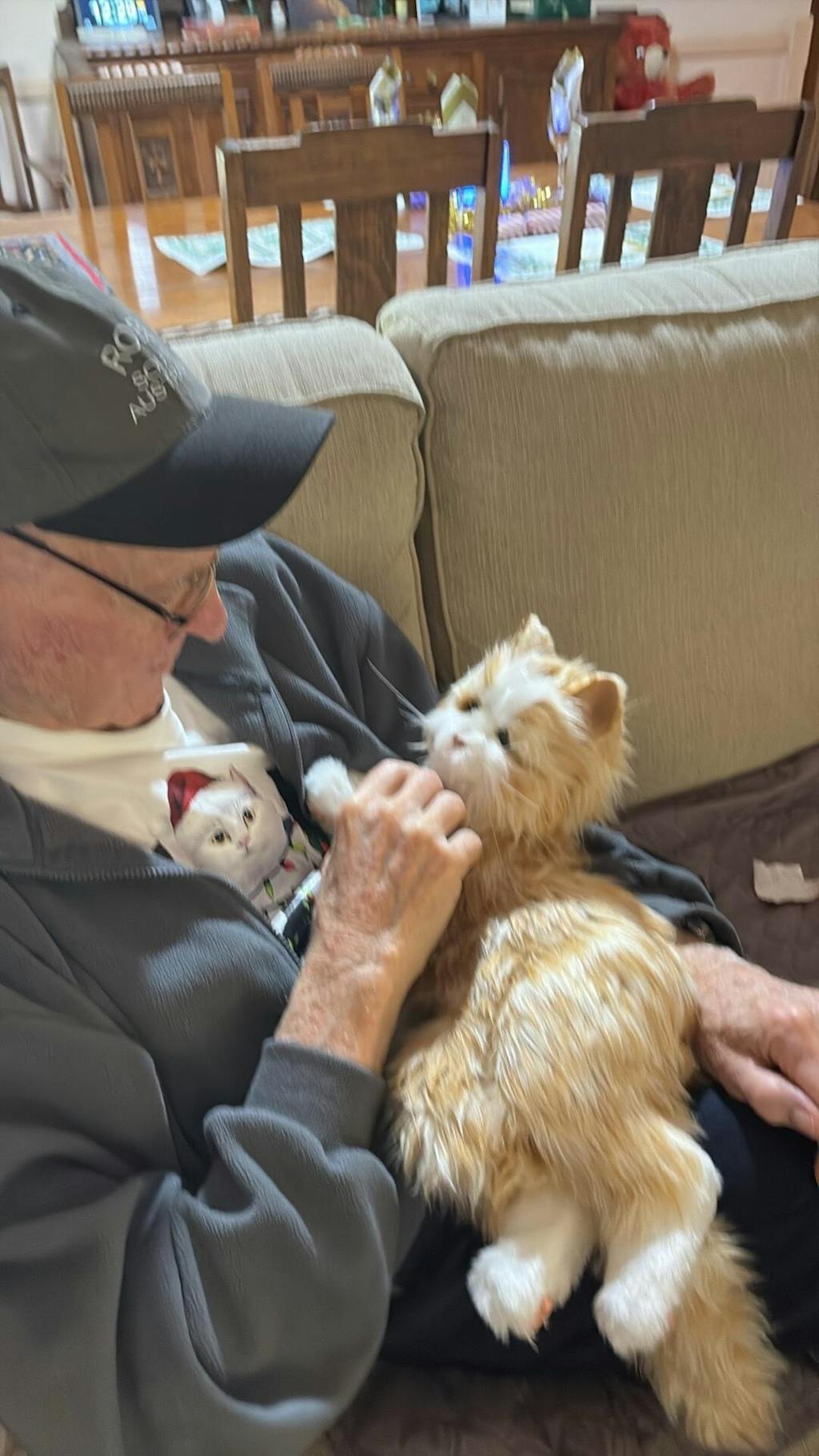 My beautiful mum has dementia and is in residential aged care. A couple of months ago I bought her a companion cat. She just loves him. Mum assures me he doesn’t eat much and isn’t any trouble! I cannot see my mum at the moment as her facility is in precautionary lockdown. I telephoned her today and she said she is doing well and ‘Oscar’ is there with her keeping her company. He even miawowed when I was on the phone. I miss mum terribly and think about her all the time, but just to know Oscar is there too makes all the difference….to me and to mum.
