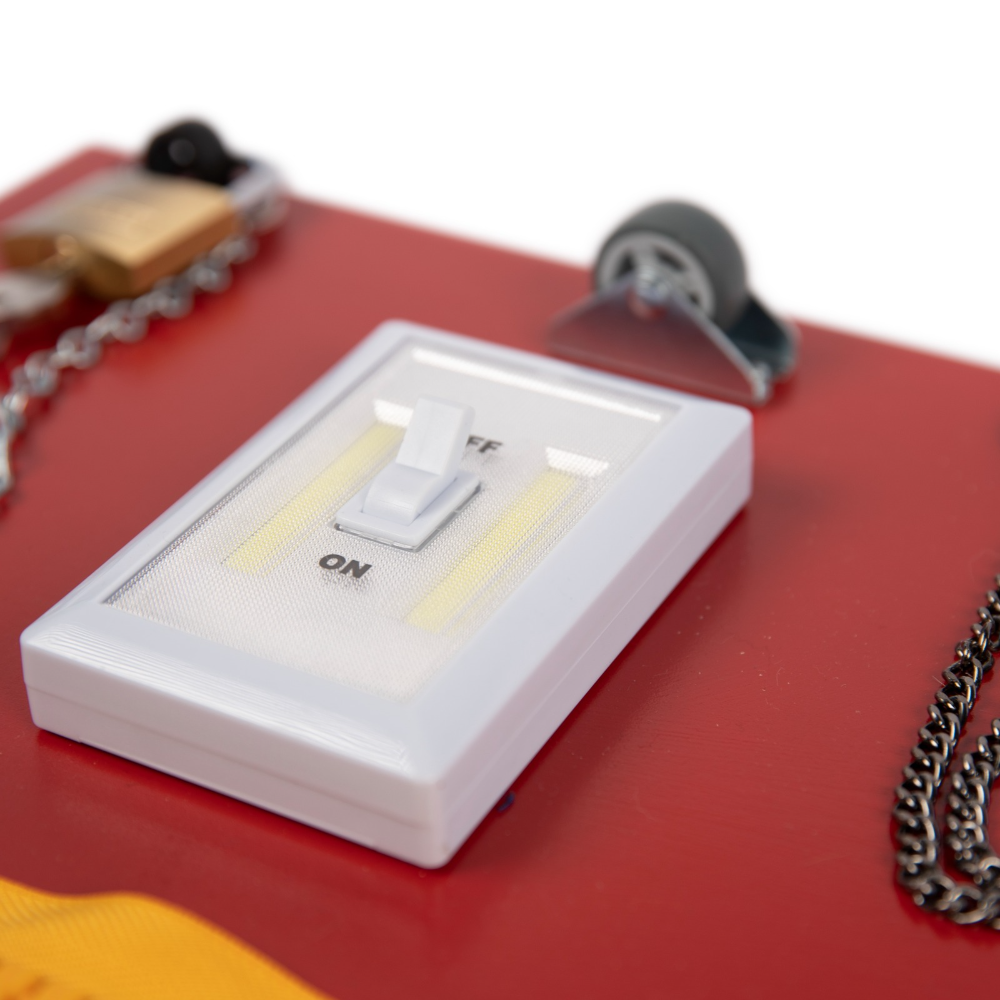 These fiddle boards are the perfect activity to keep idle hands busy. For men who enjoyed fiddling in the shed this activity will stimulate reminiscence and storytelling. Each board may differ but all have a combination of locks, switches and ties. An ideal activity for people with moderate to advanced cognitive impairment.