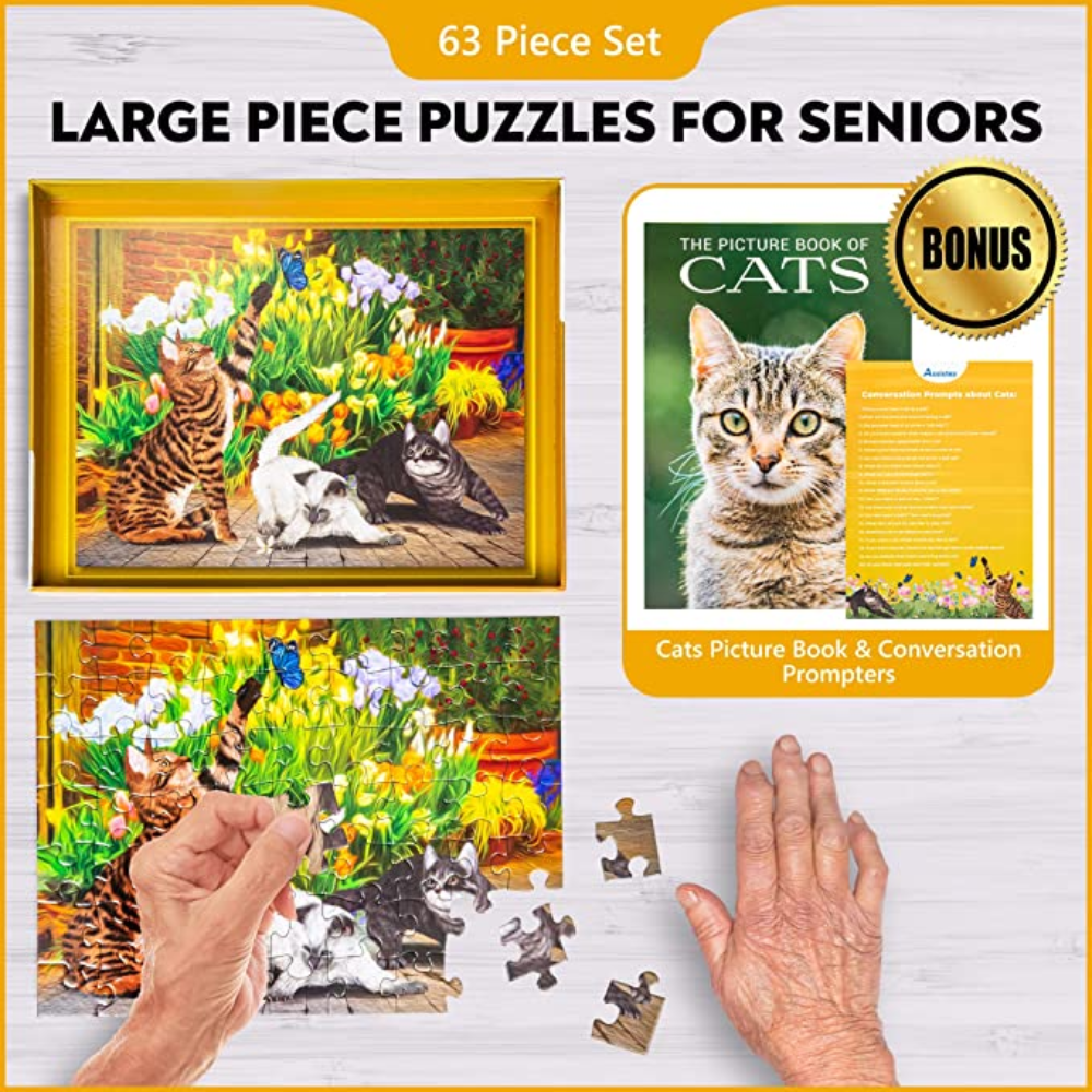 IDEAL GIFT IDEA FOR FAMILY AND FRIENDS – if you have a family member or friend who has been diagnosed with dementia, then this dementia puzzle makes the perfect gift. High quality and supplied with a conversation prompt flyer and cat picture book, this is a great way to interact with the ones you love